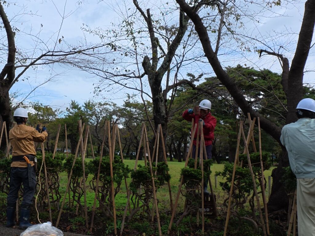 心配された雨は降らず、青空の下での作業になりました。全員の普段の行いの良さのおかげでしょう、たぶん