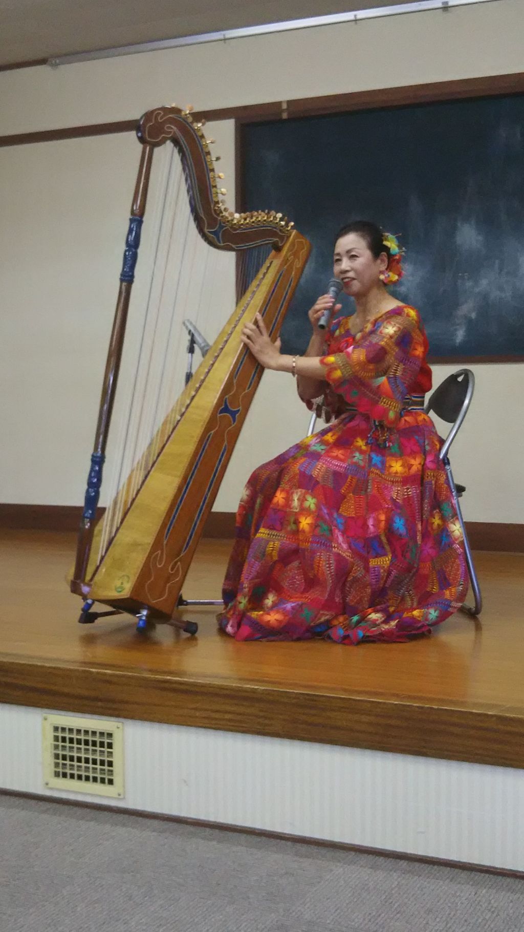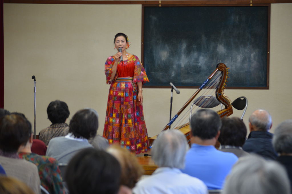 ハーモニカ演奏する関保雄さん・英子さん夫妻(5常会)。ふだんはジョークの多い関さんですが、さすがに真剣そのものです