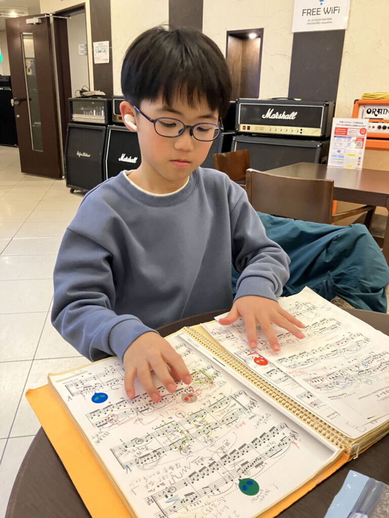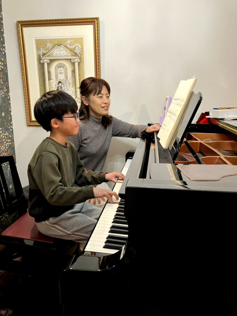 幼稚園の年少の時、お母さんの鮎子さんが「音楽を楽しむ人生を送ってもらえれば」との希望を背に、音楽教室に入りました。鮎子さん自身も以前ピアノを習って楽しい思い出があるそうです。最初は太鼓やトライアングルなどいろいろな楽器を習いましたが、そのうちピアノが気に入り本格的に習い始めたとのことです。年長になって初めて出たコンクールで2曲を演奏しました。お母さんは「人前で演奏なんてできるのか心配しましたが、意外にも堂々としていて驚きました」と笑います。湊くんも「緊張しましたが拍手をもらえてうれしかった」と言います。鮎子さんは「1年生になったらまた出たら」と話しかけました。湊くんも乗り気になって翌年出場して奨励賞を獲得しました。「がんばって練習を積み重ねていけば報われることが分かった」と振り返ります。