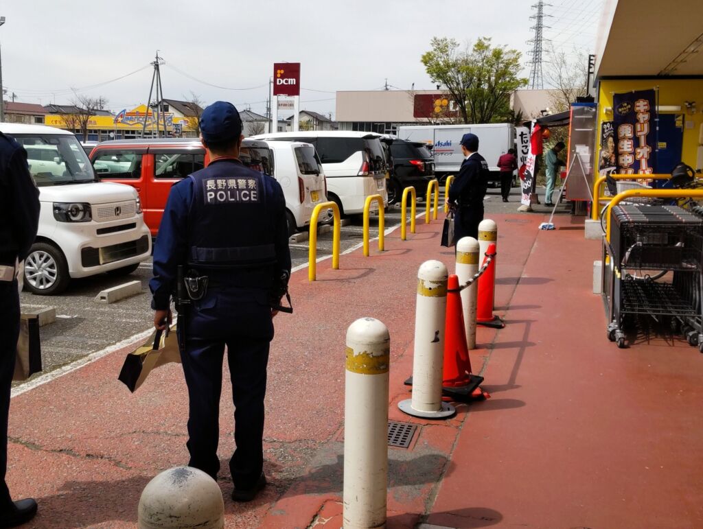 春の全国交通安全運動(4月6日~4月15日)期間中の13日午前10時から同11時にかけて、石渡区にあるザ・ビッグ長野東店で、中央警察署の警察官と長野市の職員が店の入口に立ち、ポケットティッシュとチラシを一人一人に手渡し「安全運転お願いします」と声をかけながら、交通安全の啓発活動を行いました。