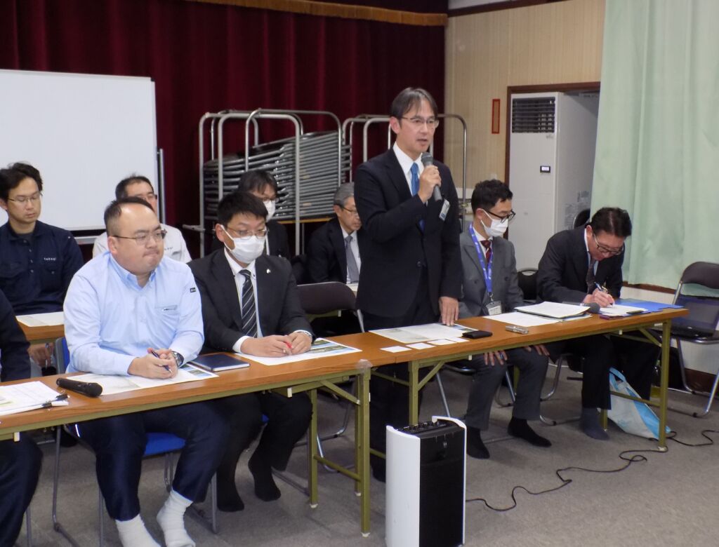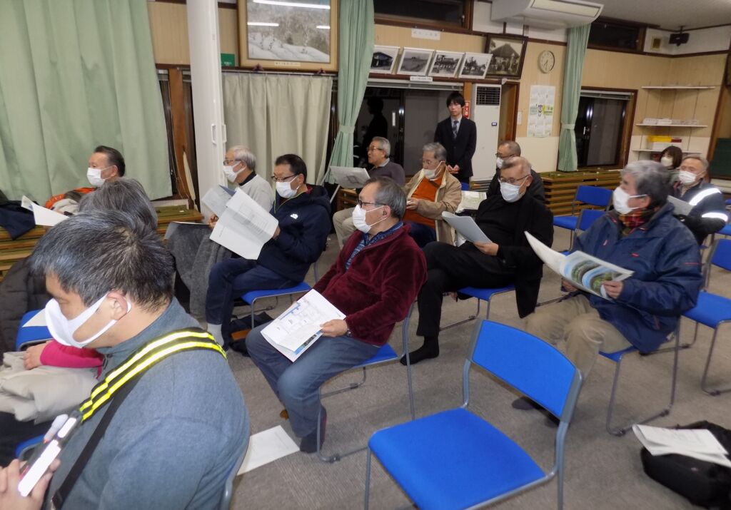 長野運動公園にある総合体育館の新築工事について12月13日夜、石渡公民館で長野市役所や施工業者などによる説明会が開かれました。約20人が参加して質問が出るなど熱心に聞き入っていました。