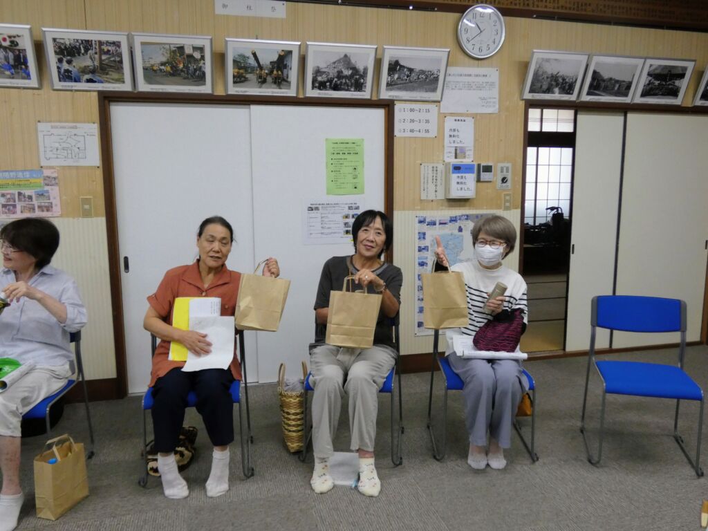 発足時は支援が無い事で苦労しましたが、現在では朝陽地区・長寿会・公民館の支援、そしてビックでやっている毎月11日のイエローキャンペーンに参加して集まったレシートで補助を頂き、年に数回参加者に還元しています。本日は飲み物とお菓子を用意しています。