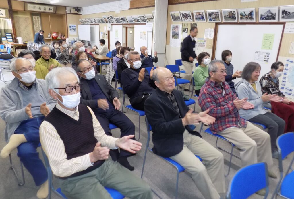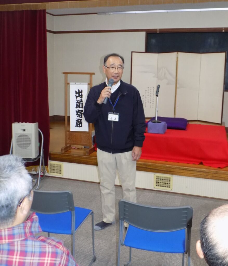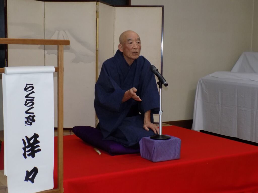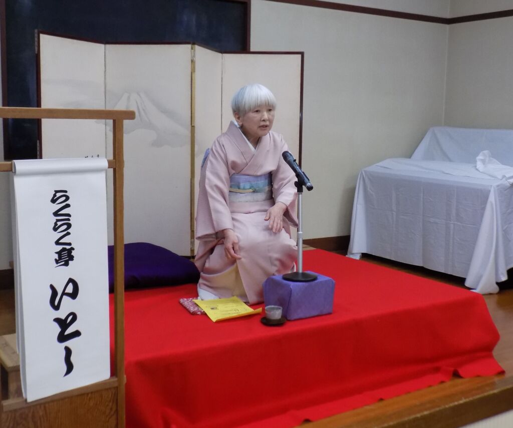 午前は、らくらく亭洋々・いとしさん夫妻による落語、午後は石渡民生児童委員による紙芝居が企画されました。落語は、いとしさんがおかしな病院をテーマに歯切れのよいテンポで話し、洋々さんが古典落語「時そば」を熱演しました。参加者からは笑いと拍手が起きました。