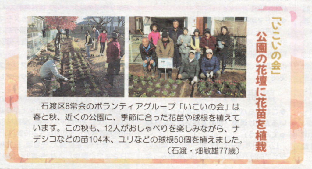 ■ 石渡区, 石渡フォトニュース 八常会「いこいの会」の活動が週刊長野に掲載 2025年11月29日 記者 11月29日(土)の週刊長野新聞の「おたより交換室」に投稿した記事が掲載されました。投稿者は畑敏雄さんです。 石渡つうしんの取材記事はこちらから閲覧できます。