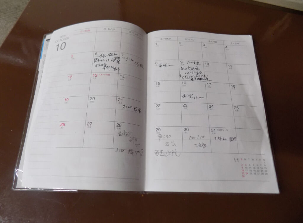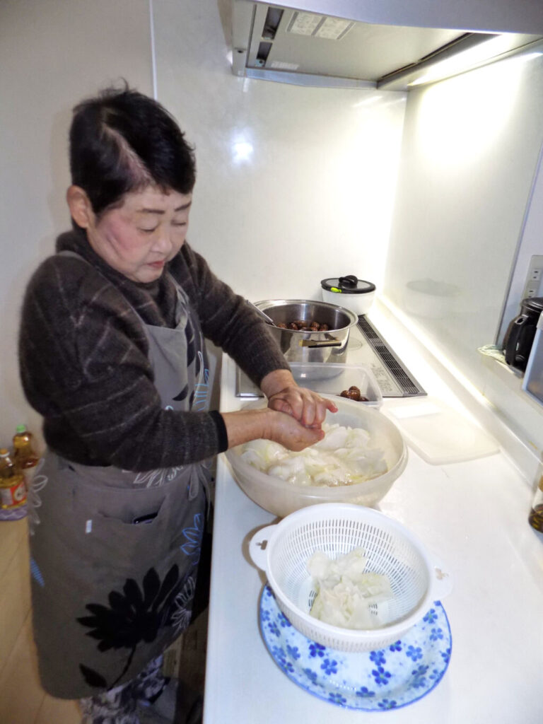 横田さんの予定表を見せてもらいました。「80歳になったのでだいぶ減らしたのよ」と言いますが、かなりの会合の予定が記入されています。「会合では、なにかつまむものや食べるものがあると盛り上がります」と言います。いわば会合の潤滑油として機会があるごとに「差し入れ」をつくって持ち込むようにしているとのことです。会社勤めのころから、「差し入れ」づくりが好きだったとか。思いつくままにこれまでにつくった「差し入れ」を挙げてもらいました。いちご大福、草餅、五目おこわ、おはぎにおやき、豚汁、けんちん汁、白菜漬け・・・。まだまだあるそうです。