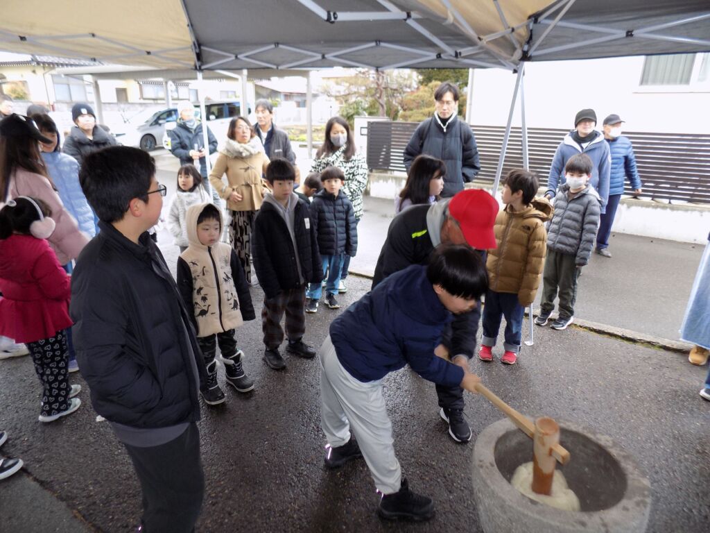 今の時代、珍しくなった餅つきを経験しようと、大勢の親子が集まり楽しみました