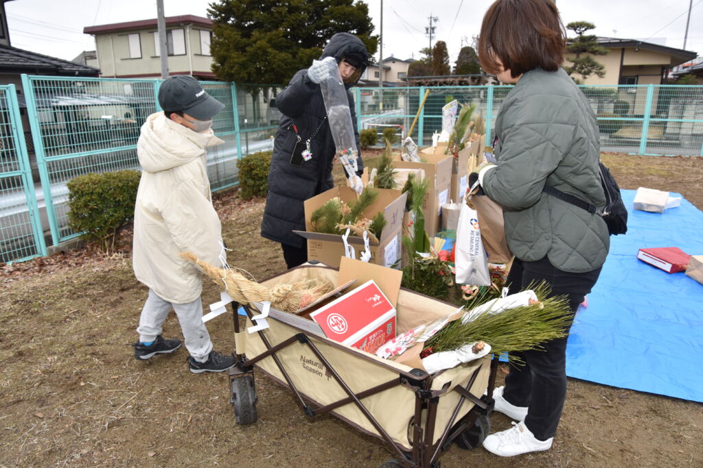 早朝からしめ飾り集めの育成会、子どもさんたち、氏子総代、公民館、区役の皆さん、そして消防団の皆さん大変お疲れさまでした。