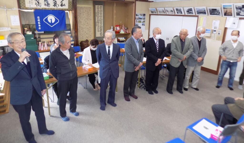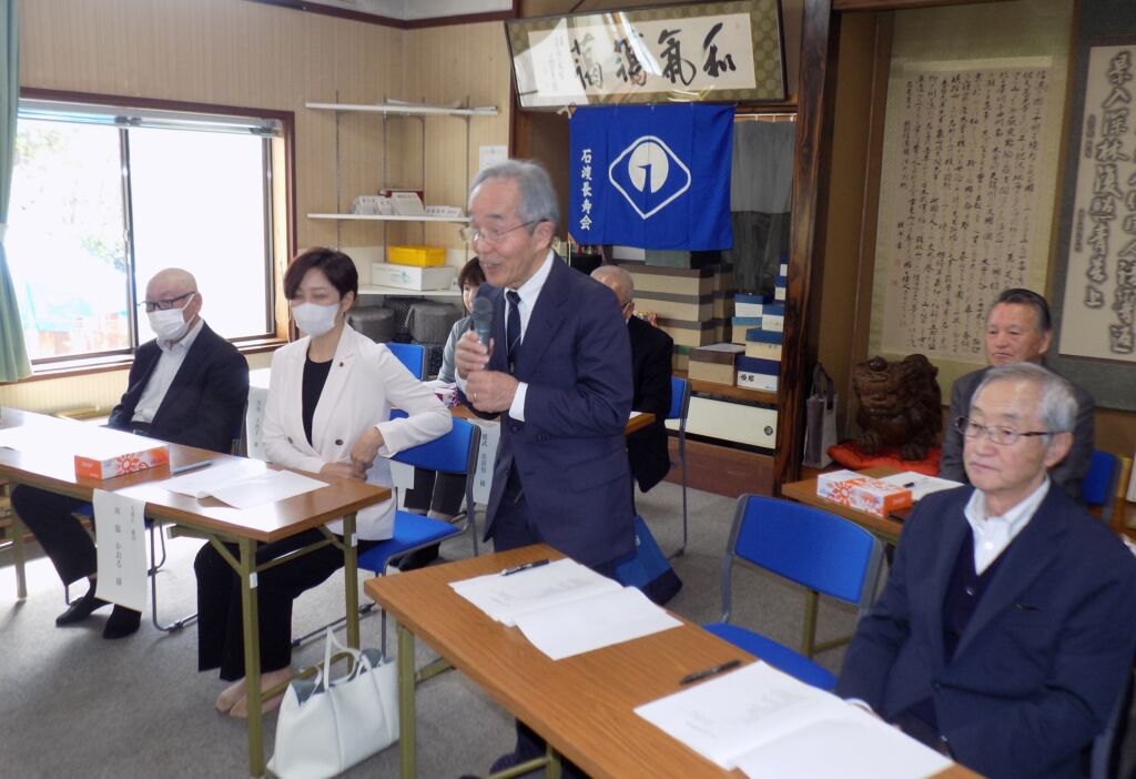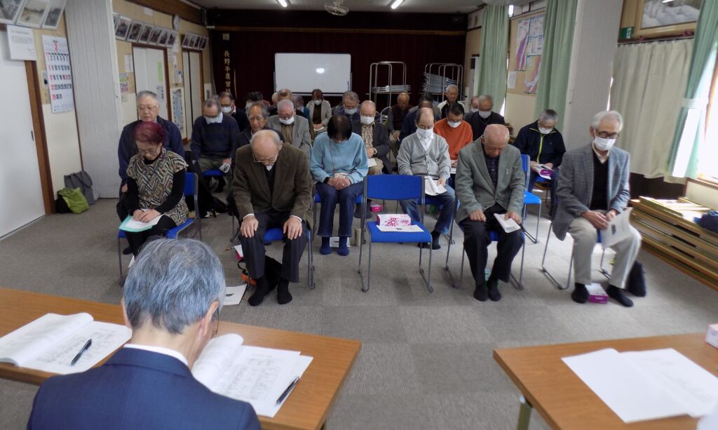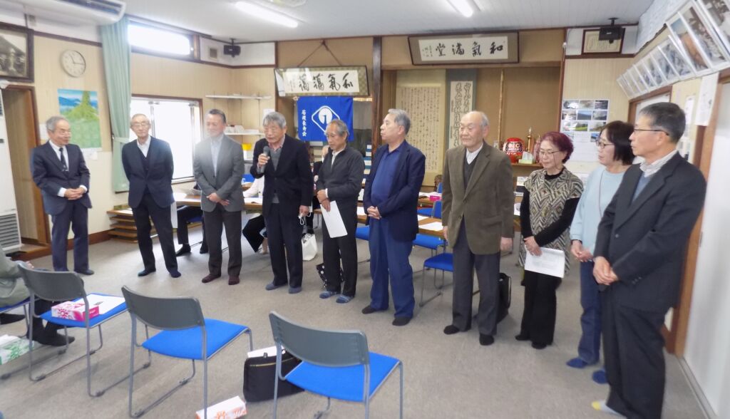石渡長寿会は3月31日、約40人が参加して石渡公民館で総会を開きました。冒頭、7年度に亡くなった4人の会員を悼んで、全員が黙とう、会場は静かな雰囲気に包まれました。