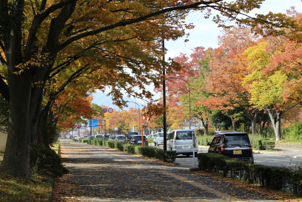 「欅並木を走る車列」 <東和田運動公園>