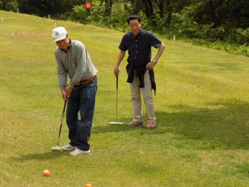 マレットゴルフのコースは上り下りのコースが多く、あちこちのグループからは「難しい」「球がちっとも言うことを聞かない。反抗期か」などの半分本気、半分冗談の声も聞かれました。