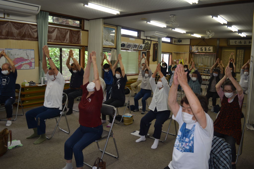 今年度、新型コロナウイルスの蔓延により、4月から石渡元気はつらつクラブの活動を休止しておりましたが、7月6日(月)、久しぶりに元気はつらつクラブが再開しました。マスクの着用、手の消毒、体温や健康チャックなど感染予防を確保しつつですが、当日、30名ほどの皆さんが集まりました。