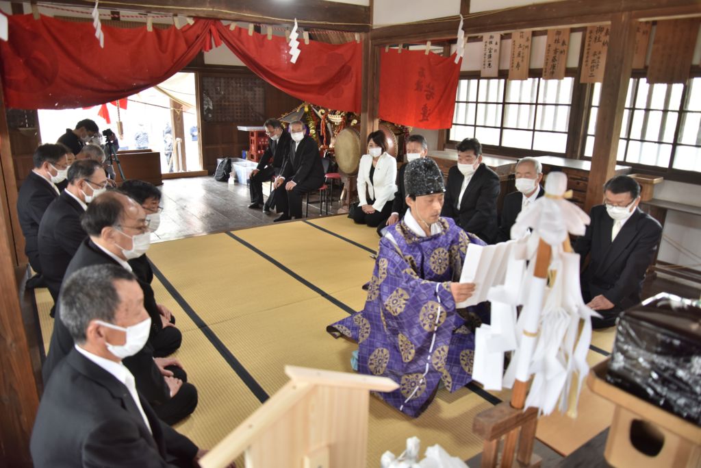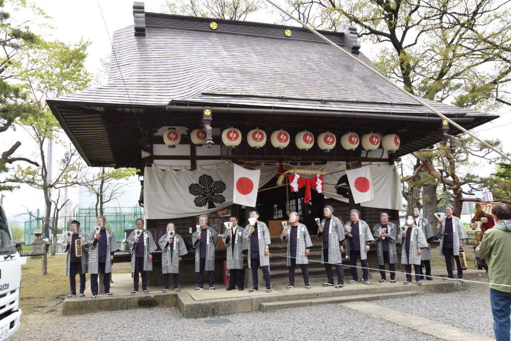 この間、八寿喜会の14人が「大手古」などの木やり歌を朗々と歌い上げ、神楽保存会が代々伝わる神楽を奉納、お祭りを盛り上げました。氏子総代の高山秀則さん(2常会)は「コロナ禍の影響で、中止になった行事もありましたが、みなさんおかげで無事にお祭りができました」とほっとした表情でした。